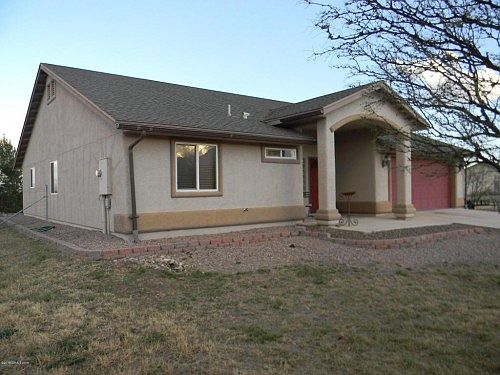Peaceful setting just off a paved road with mountain views all around. This 3 bedroom, 2 bath home on 4 acres is fenced in the back with a dog run, storage shed, pergola, and covered patio. Inside is all tile flooring except the bedrooms, ceiling fans throughout, dual sinks in both bathrooms, HUGE walk in closet in master bathroom, master bedroom has patio access, built in desk with shelving, kitchen has lots of cabinets, stainless steel appliances stay, washer and dryer stay too. Ready for a new owner, call for a private showing today.