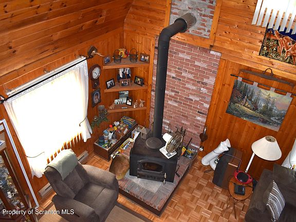 Log-sided Cabin on over 10 acre overlooking a Pond, 3 car Detached Garage, 2 bedrooms and 1 full bath, Second Bedroom is a Loft, Woodstove for cozy evenings, Covered Front Deck, Quiet & peaceful, Beautiful Views and lots of Wildlife, Close to Elk Mountain for Winter Skiing, Blue Ridge School District, Cottage sits on Piers, Comes fully furnished, Being sold ''as is'' No OGM convey