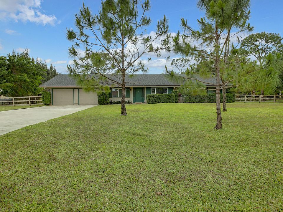 Hurry to see this desirable 4 BR, 2.5 BA, 2.5 CG ranch style home that boasts 4,000+ sf of indoor/outdoor living spaces with tons of rooms like a Den, Formal Dining Room, Granite Kitchen Island, Living Room w/stone fireplace, Oversized 2 car Garage 24'x23', Workshop, Screened Covered Patio 49'x14', a 14'x13' half size garage, and 30'x15' In ground Pool on 1+ acre fenced property with tons of trees. Enjoy entertaining in the covered screened patio with a pass through from the kitchen overlooking the pool and yard. Impact Windows throughout the home, and Accordion shutters on patio sliders. Owners take pride in maintaining this home to it's rustic splendor. Palm Beach Ranchettes is a hidden gem location with 1+ acre properties close to shopping, beach, PBI Airport, and turnpike. No HOA.