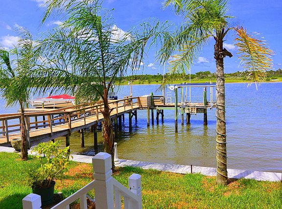3BR INTRACOASTAL FRONT WITH DOCK! Nestled between the ocean & Intracoastal waterway this lovely home features 3BR's 3 full Baths in an open concept floorplan. The water views are outstanding and invite you to enjoy what Florida living is all about! Summer Island amenities include pool, tennis, clubhouse, boat ramp, fishing dock, playground, gated entry & short walk to gorgeous Summer Haven Beach! Deep water access from your own dock with electric boat lift, great fishing & water sports abound. Large open kitchen perfect for entertaining, formal dining & 2 family rooms. 1st floor Master suite & 2 guest bedrooms on the upper level with bath & a den/office with picture perfect views! A great waterfront buy at $629K!