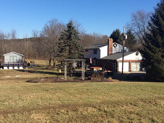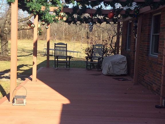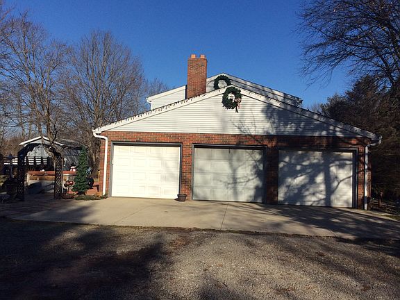 This beautiful, totally updated country home sits on 5.62 peaceful park like acres. Yard has a sand volleyball court, a 16 X 24 rectangular above ground pool - with a one year old liner. Home has a large eat in kitchen with granite counter tops and 2 yr old Bosch dishwasher, Elite Kenmore double oven and Maytag double door refrigerator with bottom freezer. Look out your newer Pella windows (8 yrs old) to see deer and turkey grazing in the yard. Kitchen opens into the family room with a beautiful brick, wood burning heatalator fireplace. The Family rooms Pella bay window looks out onto the 12 X 59 trex deck. You can enter the mud room through your 3 car garage which has a rustoleum garage floor. The mud room is adjacent to the 1st floor laundry which houses your upright freezer and washer and dryer. Sit in your living room and enjoy the view of the woods that secludes your home. Upstairs the Master bedroom has a walk in closet with built in storage shelves. 2 of the bedrooms have full wall closets with built in shelving while the 3rd bedroom has a built in desk with closets on both sides. Bathrooms have been remolded with tile showers one shower has Koehler’s 3 body jet system. From either the garage or the kitchen access your basement rec room, with nature stone flooring and an electric built in fireplace with heat (220 amp connection). There is more in the basement a kitchen area with an opening into the rec room there is a workshop room and a fruit cellar. This beautiful home is heated and cooled by Geothermal system only 9 years old and has a new architectural shingled roof 2 yrs old. The solar deck on the above ground pool attaches to the 22 X 16 outbuilding with electricity. Electrical plugs are located in various flower beds on the grounds. Don’t worry about the freezer or refrigerator food spoiling since you home is partially wired for use with a Generac system.