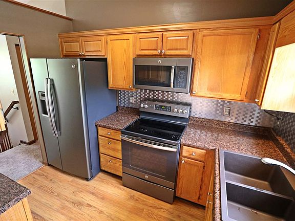 Spectacular 4 bedroom 2 full bath bi-level home situated at the end of a cul-de-sac street/ updated kitchen with back splash, stainless GE appliances/ laminate flooring/ walkout from dining room onto a large deck with an above ground pool/ new carpet upstairs/ freshly painted throughout/ new chandelier in entry/ large lot goes beyond the fence around the pool/ home offers a lot of space. Sellers will be replacing the tub in the upstairs bathroom, fixing the toilet and painting the back slider.