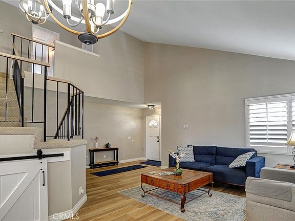 Great 2 story Beauty with newer flooring, carpet and updated kitchen. Located near the beautiful orange trees on Victoria this home is perfectly situated within walking distance of Van Buren Sports Park, the high school, elementary school, grocery shopping and is just a few minutes from the 91 freeway for those who commute. Great well kept area with friendly neighbors who keep their homes nicely. The home features 3 bedrooms, family room, living room and a bonus area downstairs perfect for an office, work out area, craft room. Home has 2 good size sheds, dog run area and large patio. Just off the patio is a lovely BBQ Island with working frig, ice box and Propane BBQ perfect for your holiday get together that can be included in sale with the right offer. Kitchen has been remodeled with glass tile backsplash, white cabinets, open shelving and a quartz island with pendant lighting. Lovely Luxury Vinyl Plank Flooring downstairs, white shutters on downstairs windows, Indoor laundry, and powder room downstairs. Home is a semi smart home. Home has and Ecobee thermostat, August wifi front door lock, Ring Doorbell and outdoor cameras, also the garage door can be hooked to wifi.