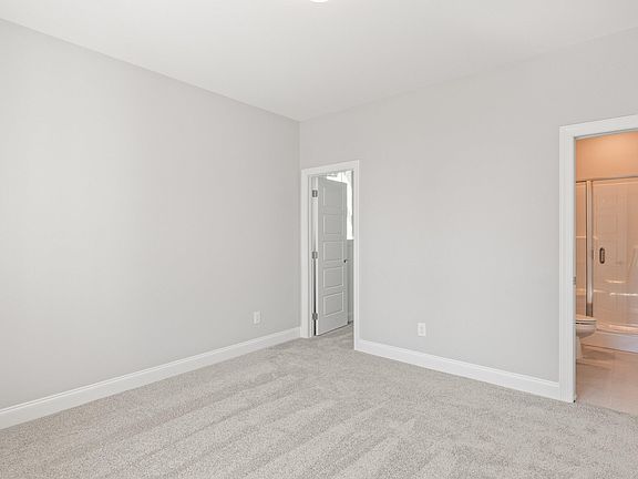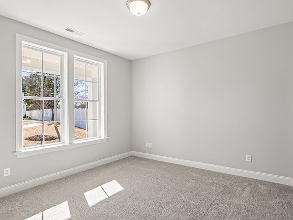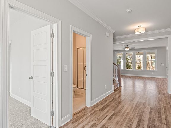 Wake County schools! Robuck Homes newest community with wooded walking trails and a dog park! This community has lots to offer and this home is our popular Hampton Floor plan. It has a nice wide foyer, a first floor guest bedroom and adjoining bath and an open concept family room and kitchen. There's a perfectly sized pocket office just off the kitchen dining area, a walk in pantry which compliments the gourmet kitchen and a spacious dining and family room. This home is great for entertaining with the covered porch and grilling patio just off the main living area. The primary bedroom upstairs is quite large and the bathroom is very spacious and includes a large tub for soaking and a tiled shower with a bench. The laundry room is just across the hall and there are 2 additional bedrooms and a hall bath to share.