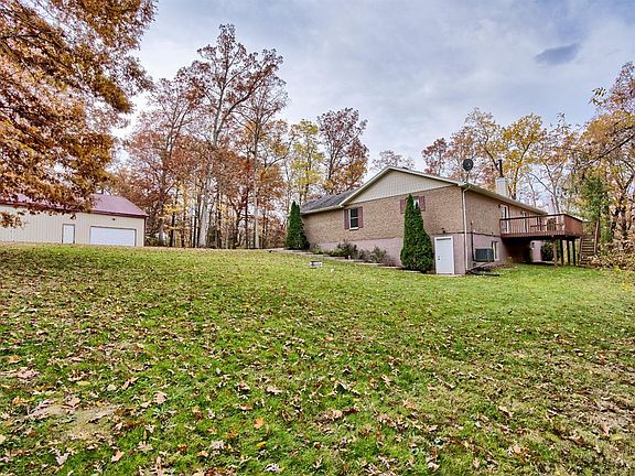 One story living in this all brick 4bed/3bath Ranch w/finished walkout basement on 12 acres (11 ac is a certified forest) . 2 car attached garage and large Pole Barn w/water and electric. Open floor plan w/large great room featuring hand scraped Hickory floors and a wbfp. Kitchen has Granite counters w/counter bar and SS appliances. Updates include bathrooms upstairs, engineered hardwood floors, New garage doors 2021 and HVAC 2019. Perfect home for the outdoor enthusiast! Immediate Occupancy!