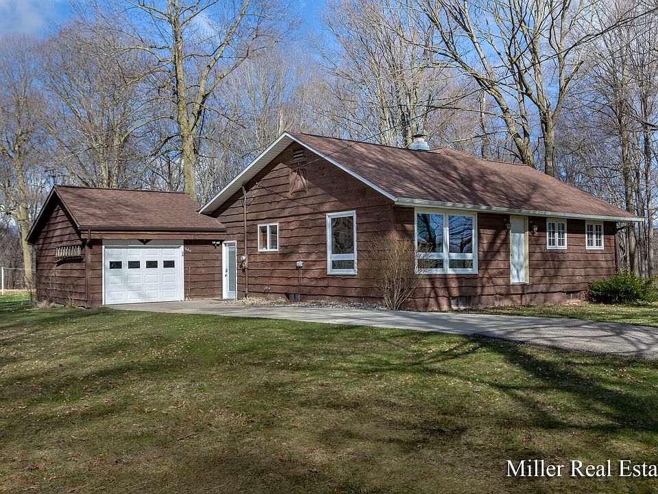 This Barry County Ranch hits all of the checkboxes! Creek frontage, wooded, extra outbuilding & paved driveway all on a secluded 16+ acre setting. This ranch features a newly added large primary bedroom with en suite. 2 additional bedrooms & updated full bath on the main floor. Kitchen has been updated including a freestanding wood burner in the dining area & new flooring. Basement features a rec room with fireplace & 2 additional interior rooms. This country setting is absolutely stellar & offers plenty of deer, turkeys, mushroom hunting & lots of frontage on designated trout stream High Bank Creek. 20x38 out building is split into 2 section including a 20x30 workshop area. In the Spring the seasonal pond & wetlands area has plenty of nesting wood ducks. Visit this amazing property today