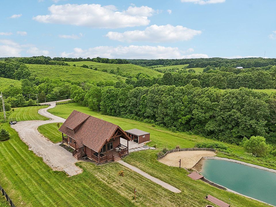 Vacation At Home! You'll love this amazing custom built Amish cabin resting on over 11 acres creating a perfect place to hunt/shoot, ride atvs, farm, raise chickens, have camp fires, & fish/relax at your own private stocked fishing pond with sand beach access. The home itself boasts of soaring 2 story ceilings with floor to ceiling windows-ample natural light inviting the outside in-gourmet kitchen with stainless steel appliances & granite countertops-covered porch access from each bedroom-Anderson doors & windows-gleaming hardwood floors-amazing owners suite with private bath & private 2nd story covered porch-360 panoramic views of the rolling hills of KY-oversized garage with external lean-to for storing all your toys & equipment. Airbnb your home for a weekend a month and live for free! Short drive to Elk Creek Winery, Toyota, Ark Encounter & KY Horse Park. Make this house your ''My KY Home'' Physical address in 9149 Cincinnati Pike Corinth, KY 41010 in Scott County.