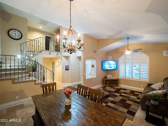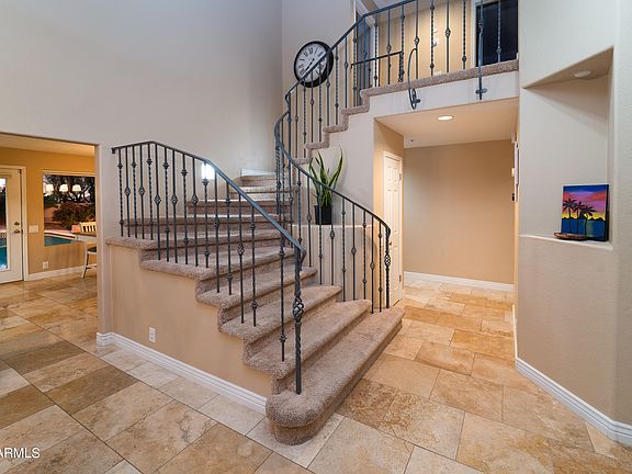 Beautiful 5 bedroom Scottsdale home. 2-story home with vaulted ceilings & plantation shutters throughout. Granite counter-tops, SS appliances & New Refrigerator. Covered patio with removable Pool safety fence, leading out to the heated pool & spa. The backyard is the best feature, large space, well shaded and very private. Enjoy a cool night under the stars by the built in firepit. The 5th bedroom is located on the lower level next to the garage, perfect for a private office space. Recently upgraded Eco water softener, AC Unit & pool pump. Pool was resurfaced last fall. Citrus trees smell amazing along the back wall of the backyard. Close to the 101 and easy access to ALL Scottsdale dining & entertainment. This is a great home for a growing family, tucked away along a private cul-de-sac.