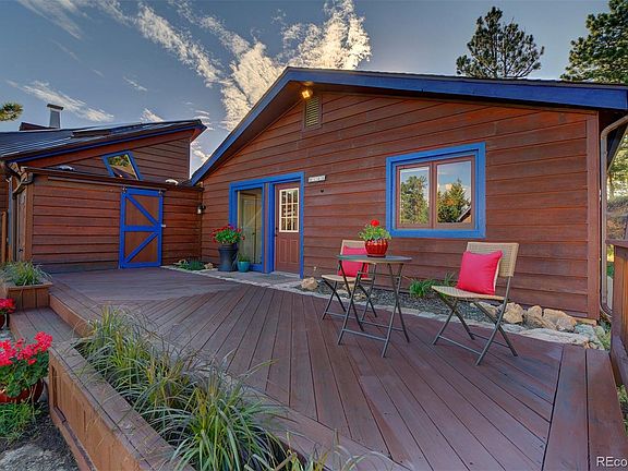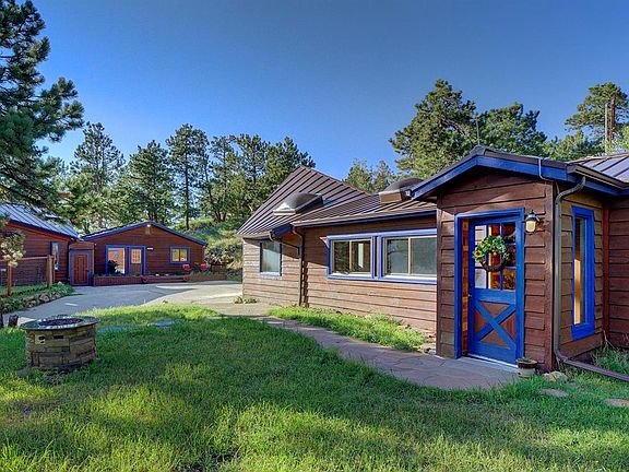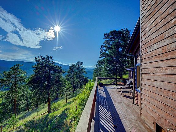 Sun drenched mountain hacienda with 360 degree unobstructed panoramic views from multiple windows and decks of Shadow Mountain, Flying J Open Space & never ending views of the forever changing snow caps on Mt Evans. Enjoy ALL main level living (no stairs) throughout this cool haven property with history back to Robert Redford and the famous band, Chicago! Tucked nicely into the tree line on 1.38 acres, deemed horse property this 3 bedroom, 2 bath also has a detached guest cottage on the property is extra 870 of sq footage fully remodeled with kitchenette, wood burning stove, new hardwoods, bedroom & gorgeous tiled bathroom, cottage offers sweeping views as well. Back to the main living area, offering 3 bedrooms, 2 baths, large eat in kitchen with blonde fresh cabinetry offering wonderful space & storage. Master connects to bathroom, 2nd bedroom currently an office has private deck offering views & quiet space, 3rd bedroom is large and has large ensuite bathroom. Lovely blonde hardwoods throughout the home, family room filled with soaring ceilings, windows & beams, cozy up to authentic moss wood burning fire place, foyer to family room has a bonus wood burning stove, slip onto to multiple decks from foyer/family room & enjoy the mountain air &views. Easy mountain living with boat loads of privacy but easy convenience with minutes to schools, eateries and shopping & walk to open space, county maintained roads making easy 35 min to Denver. Major recent updates include: upgraded metal & composite roofing with new gutters, owned solar panels which replace electric utilities, remodeled studio guest house; new dog run and covered dog kennel; new flagstone patio and pathways; upgraded main electrical panels, new radon mitigation system. County maintained roads, 35 min to Denver, 45 min to Ski Resorts! South facing driveway at end of cul de sac. Foothills living at its finest with artistic flare and privacy! Excellent Wifi! Copy/Paste tour: https://vimeo.com/740750793