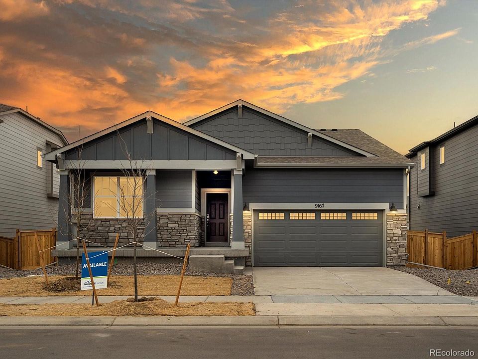 The Glenwood offers a welcoming and open floor plan that centers around a spacious kitchen with an eat-at island, seamlessly flowing into a covered back patio for outdoor relaxation. The primary suite features a generous walk-in closet, perfect for storing all your wardrobe essentials. This single-story ranch home spans approximately 1,829 square feet, with three bedrooms and two full bathrooms. It includes a two-bay garage and a partially unfinished basement, providing additional storage or future expansion options. Renowned for quality construction and innovative design, Meritage Homes offers unparalleled energy efficiency with features such as advanced spray foam insulation, ensuring comfort and savings year-round. With our all-inclusive and transparent pricing, all designer upgrades are included, eliminating any surprises. Discover a truly move-in ready home that reflects Meritage Homes' commitment to excellence and sustainability. Photos are representative only and are not of the actual home. Actual finishes, elevation, and features may vary.
