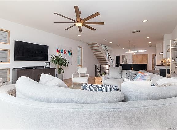 Love where you Live in this modern style and tastefully designed Uptown condo! This 2017 finished unit features beautiful hardwoods throughout, modern stairs with raw metal handrails, soaring ceilings, open and delightful floor plan. Windows that are so unique in design and get you GREAT natural light! Gourmet, white kitchen with custom backsplash, stainless appliances, gas cooktop- stainless fridge and washer/dryer included. Large white quartz kitchen island and quartz counters. Master suite features a walk out oversized terrace! Luxury bath with large shower, dual vanity. Walk in closet with custom built ins. Lower level suite features stylish concrete flooring, full bath and walk in closet for ample storage. 2 YEARS OLD- this unit has a Rinnai tankless water heater, extra insulation, HVAC control on every level for energy efficiency. Large 2 car garage. Walk to Panthers stadium, Romare Bearden Park, scooter to light rail. This unit is a great find and a proud place to call home!