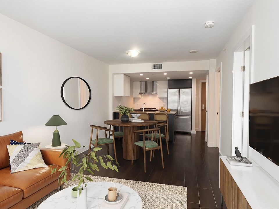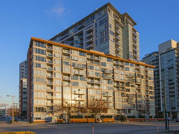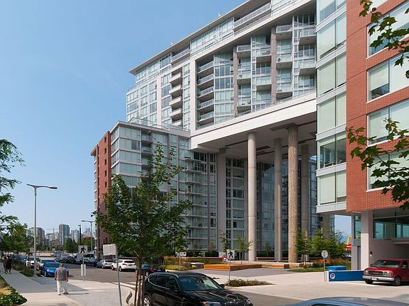Central by Onni. A spectacular East facing 1 bedroom & den with flex space layout in the heart of Southeast False Creek. This great layout includes both solarium (perfect for WFH) and flex space, and bonus views of the city and mountains. Kitchen features granite countertops, Jenn-Air appliances, gas cooktop, central heating & air conditioning. Freshly painted and move-in ready! Just steps to the skytrain, Science World, everything Main Street and Olympic Village have to offer. Building features full-time concierge, fitness centre, party/games room, theatre, and rooftop garden terrace. 1 Parking and 1 Storage locker included.