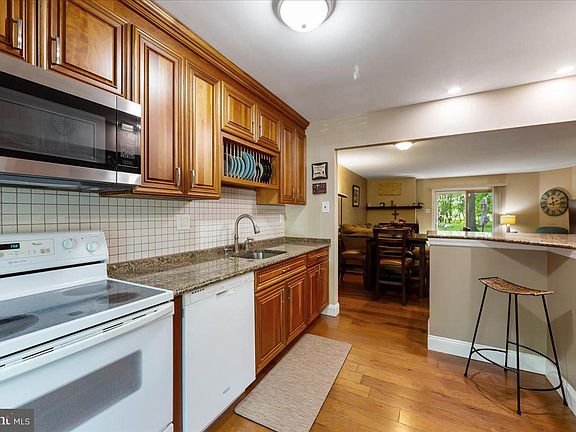 Welcome to this beautifully maintained 2-bedroom, 1.5-bath townhome located in the desirable Terrestria community. This open-concept home offers a warm and inviting layout, starting with hardwood floors that flow throughout the first floor. The kitchen features granite countertops, 42-inch cabinets, a newer kitchen window, and plenty of space for cooking and entertaining. The cozy living room includes a wood-burning fireplace—perfect for relaxing evenings. Downstairs, the finished basement boasts newer laminate flooring, newer windows, and ample space for a home office, gym, or additional living area. Both bathrooms have been tastefully updated, and the home has been converted to efficient gas heat. The primary bedroom offers double closets, and the attic has been re-insulated for added energy efficiency. Enjoy privacy and tranquility with a wooded lot behind the home. With its thoughtful updates and great location, this home is a must-see!