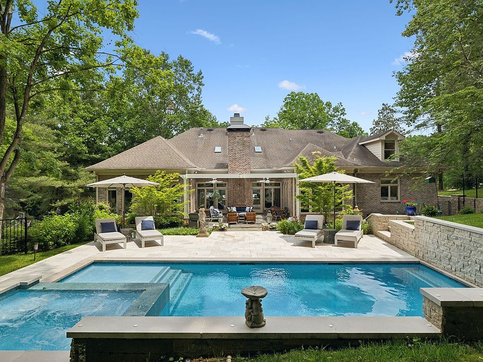 Showstopper in Brentwood! This gracious Heathrow Hills home offers a rare blend of contemporary luxury and traditional design. The property boasts an exquisite backyard sanctuary equipped with a saltwater pool and spa, professionally curated gardens, and an expansive flagstone patio. The impressive entryway sets the stage for three levels of luxury living and a wonderfully versatile floor plan. Two main level suites along with three separate first floor living areas offer flexibility and functionality. The circular floor plan allows for both ease of entertaining and comfortable family living, incorporating timeless finishes and stunning updates throughout. The updated chef's kitchen opens seamlessly to a sunny breakfast nook overlooking the resort style pool and backyard. Elevated kitchen features include gleaming quartzite counters, newer appliances, stunning designer tile and all new lighting. The separate butlers area flows to the spacious formal dining room beyond, overlooking the sprawling front lawn. The luxurious primary suite is a true retreat, with a spacious spa-like bath and a huge boutique style closet. Opening directly to the fully renovated laundry room, this expansive suite blends luxury and functionality in a truly sophisticated way. Upstairs living features two additional ensuite bedrooms and a loft area perfect for homework or crafts. An oversized lower level rec room offers options for an exercise area, media room and more, and boasts brand new luxury flooring. The 4 car garage with all new epoxy flooring is a car collectors dream and includes two storage areas and a separate workshop w/adjacent storm shelter (could be transformed to a perfect man cave). There is a second entrance and separate stairway to to the main level bonus room (currently being used as an in-law suite). Don't miss your opportunity to experience this wonderfully unique home, walking distance to award winning Brentwood Middle & Brentwood High!