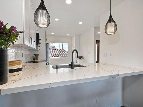 Coastal Townhome with Ocean Views –  Serene Setting Close to Beach, Dining & Shopping! Enjoy the best of beach living in this bright and beautiful, newly renovated 2-story townhome, offering panoramic ocean and sunset views from the living area, balcony, and primary suite. Conveniently located within walking and biking distance to shopping, restaurants, and the beach, this home blends coastal charm with modern convenience. This light filled townhome features a spacious layout with no neighbors above or below, ensuring privacy and quiet. The main level includes an open-plan living area with high vaulted ceilings, built-in shelving, gas fireplace, guest bathroom, and a balcony to enjoy the stunning ocean view and breeze. The brand-new modern kitchen features granite counters and all new appliances, with all new flooring throughout. Downstairs, you'll find two large bedrooms, each with its own en-suite bathroom, and wake up to a full ocean view from the south bedroom. Large closets and plenty of storage plus a full-size laundry area. The detached one-car garage is just steps from the front door, with additional parking spaces nearby. The home has been thoroughly updated, including new forced air furnace (2022), new carpet & flooring in the downstairs bedrooms & bathrooms (2021), new LVP flooring on main (2024), new upstairs half bath (2025), new custom front door (2019). The HOA installed a new roof in 2020, and the HOA fee covers all water, including hot water via a common boiler. Amenities include pool, jacuzzi, sauna and lush pathways for strolling the beautifully landscaped grounds. Conveniently located off the 5 Freeway in South Carlsbad, this gorgeous neighborhood is peaceful, safe and walkable, offering a rare combination of privacy, ocean views, and a prime coastal location. This community loves dogs!