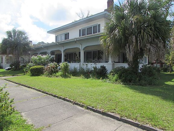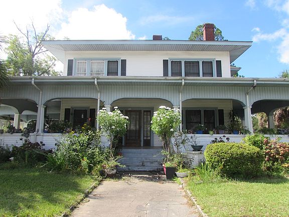 This beautiful home was built by the King family and retains all of its original charm. You'll find glass door knobs and beveled glass French doors. Original hardwood floors are beautiful. The wide wraparound porch has a terrazzo floor. There is a bedroom downstairs and 4 bedrooms upstairs. Dining room leads through to the butler's pantry and onward to the kitchen. Lots of nice windows and light in every room. There are 2 living areas in the front as well as another living area in the back. The kitchen is spacious. Stove and fridge will stay as well as washer and dryer. The home has vinyl siding and soffits, but underneath is solidly built concrete or brick. Walls are thick making heating and cooling an easy task. There is a garage and also a shed at the back. Driveway access from front and side streets. Plumbing and electrical have been updated. Two staircases! You'll enjoy an easy walk down town with sidewalks all the way. Welcome to your new home in Waycross.