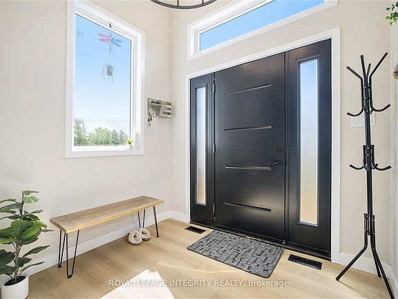 915 Code Drive is where modern design meets storybook charm. Custom-built in 2024 for a homeowner with a keen eye for style, this residence now seeks its next chapter. Nestled on just over an acre at the edge of Smiths Falls, with booming Carleton Place a breezy 25 minutes away and historic Perth just 20 minutes down the road, this home offers the perfect blend of country calm and commuter convenience. Beyond the front door, sunlight cascades across thoughtful and refined finishes, illuminating every bespoke detail. The main floor's open flow is anchored by a stunning fireplace feature wall which sets the stage for cozy winter evenings and lively gatherings alike. Upstairs, three bright bedrooms await, each with its own personality and one ready to serve as the master if you choose. Downstairs, the walk-out lower level reveals a bright and airy private master suite with walk-in closet and full bath, ideal for private sleeping quarters for the adults, a guest suite to impress family and friends with comfort and style, or a quiet workspace undisturbed by the regular flow of the household. The extras delight as well: a fresh, modern exterior with soffit lighting to welcome you home, an attached double garage for your vehicles, projects, or toys, and a raised deck overlooking your private paradise. Oversized bathroom vanities, a large well-lit recreation room, and many other thoughtful touches throughout complete this masterpiece home. 915 Code Drive is more than a residence; it is an invitation to craft your lifestyle within a masterfully designed contemporary home, surrounded by boundless possibilities and ensured private by nature.