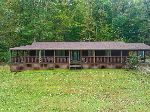 Escape to your private oasis! Nestled among mature trees, this beautifully crafted cabin offers the perfect blend of tranquility and convenience. Just a stone's throw from town, you'll enjoy the beauty of nature without sacrificing access to amenities. You'll immediately notice the spacious wrap around covered porch. Inside there are stunning hardwood floors that flow throughout the living spaces, ceramic tile in the bathrooms. Every detail was observed with high-quality construction and thoughtful details like rounded doorways and original wood trim doors. The spacious kitchen features ample cabinetry, providing plenty of storage for all your culinary needs. There is a mudroom located off the back as you come in through the covered back porch, complete with laundry. The property also has a covered carport and additional storage options with a cellar and storage shed. With 11 acres of wooded land, there is plenty of room to explore, unwind and embrace the beauty of nature. The owner has loved this home for 25 years. You will love it too.