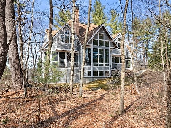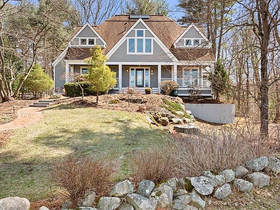 Elevated in a stunning setting, this Acorn-style home offers exceptional curb appeal and panoramic views, ensuring privacy and tranquility. Surrounded by conservation land and near the Cranberry Bog, the home features three stories with soaring ceilings and expansive glass walls, flooding the space with natural light. The main floor seamlessly connects the living, dining, and gourmet kitchen areas, with a screened-in porch off the grand living room for peaceful relaxation. A first-floor office offers a serene retreat. Upstairs, three spacious bedrooms with high ceilings include a window seating area framed by large windows showcasing breathtaking views. The finished walk-out basement includes a private bedroom suite with a full bath and a spacious recreation room, ideal for a media room, gym, or playroom. Extensive landscaping and a beautiful farmer’s porch further enhance the home’s appeal. This is a rare opportunity to experience the perfect blend of elegance and nature.