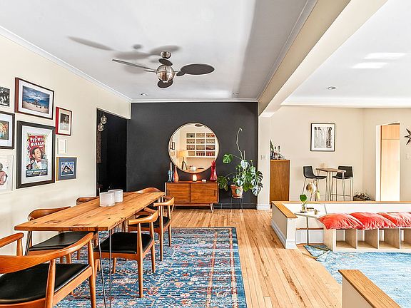 The building provides parking, laundry facilities, and a part-time doorman, ensuring convenience and comfort. Located on a secluded street, the neighborhood is a verdant haven, with Cortelyou Road just steps away. This bustling hub offers a vibrant mix of culture, dining, and community spirit, with a weekly farmer’s market, eclectic shops, charming cafes, and a diverse restaurant scene.