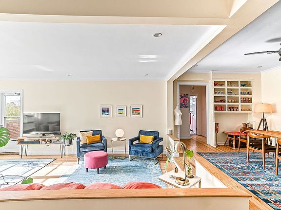 Welcome to this captivating 2-bedroom, 2-bathroom apartment nestled in the heart of Midwood, Brooklyn. This residence features a sunken living room, a generously sized private terrace, and unobstructed, sweeping views of the west and north skies. The primary bedroom offers a tranquil retreat with an ensuite bathroom, while the second bedroom provides ample space and a large storage closet.