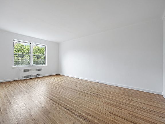Super spacious (850+ sq.ft.), bright one-bedroom in full-service building. This serene home boasts hardwood floors, eat-in kitchen, four large closets, sky and treetop views, high ceilings, and a winged layout. The extra-large living room easily fits a dining table and two seating areas, and can be converted into two rooms. The wide foyer is perfect for a home office or a mud room. Similar apartments in the line have opened up the kitchen to make an open plan concept. The king-sized bedroom has two large closets and plenty of room for all your furniture.
