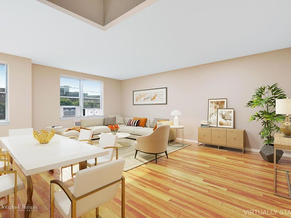 Unique, Brooklyn gem located on QUIET, tree-lined street in tranquil Terrace Gardens Complex! Bright and airy, LARGE top-floor one bedroom unit with open living-dining space, semi-open windowed galley kitchen with beautiful cabinetry and stainless appliances including a dishwasher and a microwave, a large windowed bathroom and lots of closet space. The bedroom is huge, and easily fits a king sized bed and much more. Lovely hardwood floors, throughout. Laundry and bike storage in basement. Garage parking (short waiting list), Doorman, Security and live-in superintendent. 2 SHORT BLOCKS to the Ave J B,Q train and shopping. Beautiful grounds and courtyard. Pets are welcome! 25% down payment is required.