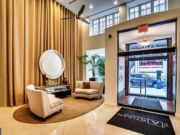 The Artisan is a modern condo building in the Penn Quarter. The Artisan is just a few blocks away from the National Mall, Smithsonian museums, National Gallery of Art and garden plus shopping and dining at nearby City Center is literally around the corner. Nearby and in site line is the Capital One Arena for basketball, hockey, and major concerts and entertainment. Artisan is centrally located to multiple metros: Archives/Penn Quarter Station, Metro Center, Chinatown Station, Federal Triangle, and Mount Vernon Square. Unit 1004 is a larger studio apartment on a desirable higher floor. Spacious-open living room, three large windows, hardwood bamboo floor, new in unit washer and dryer, new gas stove and dish washer. Water and gas included in rent. Unit 1004 features eco-friendly bamboo flooring, stainless steel appliances surrounded by maple cabinetry topped with granite counters. The building features a trendy lobby with concierge and desk staff, fully equipped fitness center, party room/lounge, open air roof deck. The Artisan features a private key entry with 24/7 front desk attendant plus on-site management. The Artisan's neighborhood places you near the 7th St restaurants and entertainment (Carmine's, Chop House, Clyde's and more), shopping at high-end boutiques at City Center DC, Smithsonian museums on the National Mall, and plenty of theaters like Ford's, Shakespeare, Wooly Mammoth theater. The yellow line near the Artisan is a direct ride to National Airport and/or Union Station's Amtrak station in just minutes.
