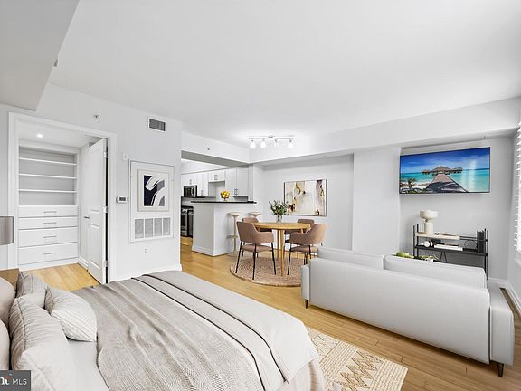 Welcome to The Artisan, where an exceptional living experience awaits in the heart of Penn Quarter—perfect for those who crave vibrant city life with the tranquility of an urban retreat. Step into this captivating 9th-floor studio condo and be welcomed by an open floor plan featuring elegant hardwood floors throughout. The kitchen is a chef's dream, boasting custom cabinetry, stainless steel appliances, and striking granite countertops. A large walk-in closet enhances the space, while the bathroom offers a tiled shower/tub combo, custom tile flooring, and a granite sink countertop. The convenience of an in-unit stacked front-loading washer and dryer adds further appeal. A wall-mounted LED TV conveys with the unit. This condo provides a peaceful escape from the bustling streets below. As a resident of The Artisan, you’ll enjoy top-tier amenities, including 24/7 concierge service, a state-of-the-art fitness center, a rooftop deck with panoramic city views and grilling stations, and a club room ideal for social events—all within a pet-friendly community. With a Walk Score of 99 and a Transit Score of 100, you’re just steps away from Metro Center and Gallery Place stations for easy commuting, with quick access to I-395 for weekend getaways. Plus, you'll be only blocks from Capital One Arena, Smithsonian Museums, Chinatown, and the National Mall. Don’t miss the opportunity to embrace this extraordinary lifestyle—make The Artisan your new home today! The photos in the listing are virtually staged.