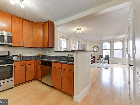 Beautiful 1 bed/1 bath condo with assigned parking space included in the garage. Great size open living/dining creates a relaxed environment that lends itself to entertaining. Nice hardwood floors. Open kitchen with granite counters, ample storage in cabinets and stainless steal appliances. Washer and dryer in the unit. Pets are allowed. Spectacular location! Short walk to every color Metro line.