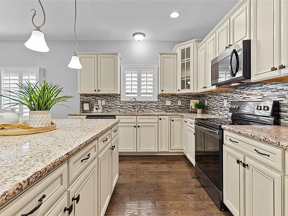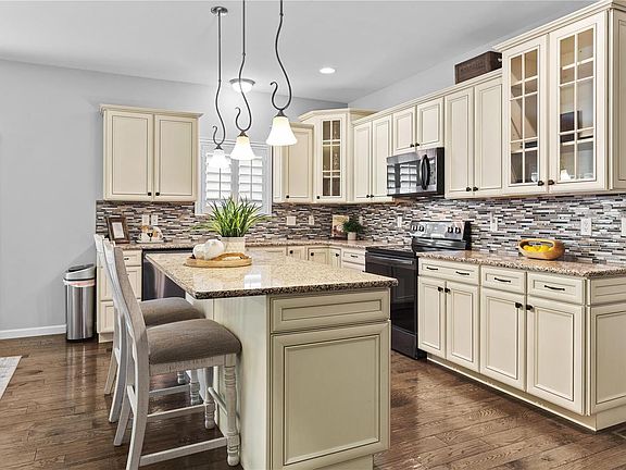 This fabulous 4bd/2.5ba 2 Story home offers plenty of curb appeal w/ professional landscaping, covered front porch, low maintenance brick/vinyl siding & a spacious 3 car garage. The entry foyer leads to an office offering w/ modern sliding barn doors, a gorgeous open formal dining room & a large family room that includes a wall of windows w/plantation shutters & a w/b fireplace. You will adore the luxurious upgraded kitchen that includes wood floors, large center island, granite countertops, custom cabinets and eye-catching backsplash. The main floor also includes a breakfast room, half bath, & laundry room. The large Master bedroom includes crown molding, large walk-in closet & ensuite with adult sized dual vanity, oval soaking tub & glass shower. The second level opens up to large loft & 3 large bedrooms with walk in closets & a full bath. The back yard offers a fabulous custom stamped patio with a custom stone wall & BBQ pit area. Basement offers storage & opportunity for expansion.