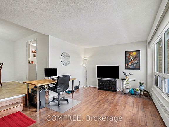 Stunning Bright panoramic view of Ottawa and sunset 3 bdrm unit condo apartment located in a sought after Hillsview Towers /Beacon Hill well maintained with many amenities. Located close to everything. Primary bdrm has 2 piece en-suite bath & walk in closet, & 2 other good sized bdrms. Part of wall has been removed between 2nd and 3rd bdrm but can easily be converted back if needed. Laminate flooring & tile throughout. Dining room overlooks sunken living room with access to balcony with gorgeous South -Western -North view. 2 wall mounted A/C units, heat pump system on balcony, & electric heat professionally installed. Condo fees include heat, hydro, water, 1 underground parking space in prime location near building entrance, locker. Unit has also storage room inside. Amenities include: car wash, bike room, sauna, guest suites, inground pool with lifeguards, party room, club house 50+ With pool table & some gym equipment, admin office onsite, bright clean shared laundry room. Close to transit, shopping, schools wave pool, downtown, bike paths and Ottawa river. Blair & Montreal Road OT stations