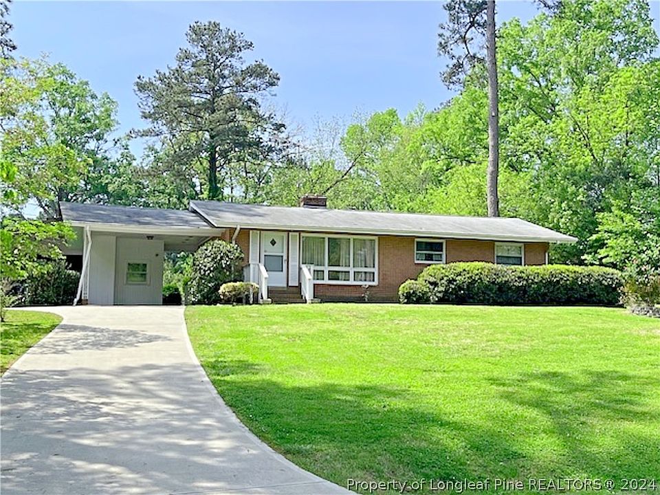 WEST SANFORD BRICK RANCH under $200k ! This Mid Century should go very fast. Is potentially move in ready or invest some & it would be well worth it in this GREAT corner location, hardly any traffic, beautiful view out across street. Well built in 1967 but w/newer kitchen cab & counter & appliances & floor, & windows. 8yr old Roof w/Wide Eaves. Hardwoods under carpet & refinished would be an awesome look & feel ! Home Clean IN/OUT. Nice simple mature landscaping, Newer gorgeous wrap-around front concrete driveway & luscious lawn all around, most larger older trees gone. City water & septic tank here. EVANS DR is street just off CARBONTON ROAD near Catholic Church across & down Evans & at end on left corner as street wraps around home. .42 acres feels larger w/ the space near road rounding front 2 sides of lot. Space inside to expand Master 1/2bath to add shower & hall should be space to add new Washer/Dryer closet-Ask List Agent. Washer has been in Kitchen & Dryer in carport utility rm