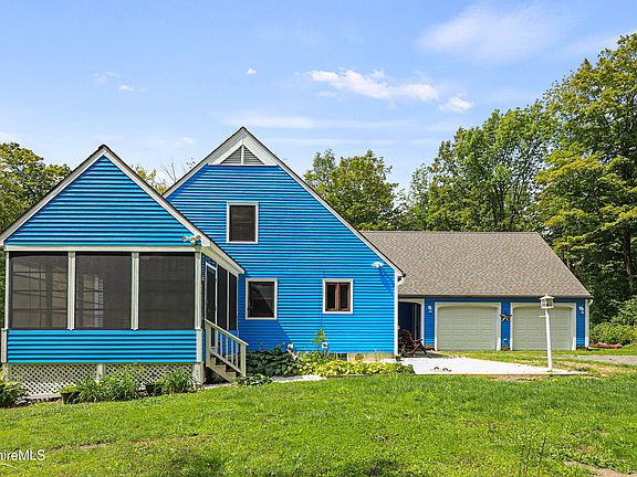 This charming home is set on a peaceful county road surrounded by the natural beauty of the Berkshires. This inviting home features an open-concept layout with a seamless flow between the kitchen, dining, and living areas with a wood-burning fireplace. The first floor also includes a convenient bedroom and full bath. A three-season encllosed porch and a bright four-season sunroom provide additional living space and direct access to the back deck. Upstairs, you'll find three additional bedrooms, a full bath, and a bonus room-ideal for a playroom or workout area. An unfinished room above the garage offers excellent storage or the opportunity to create even more living space. The partially finished lower level offers a family room with a bar area and sink, laundry, and a workshop space. The basement offers direct access to the oversized two-car garage with brand-new doors. Set on just under 5 acres in a quiet country setting, yet just minutes from Berkshire trails. Don't miss the chance of privacy with a home that has room for everyone and everything.