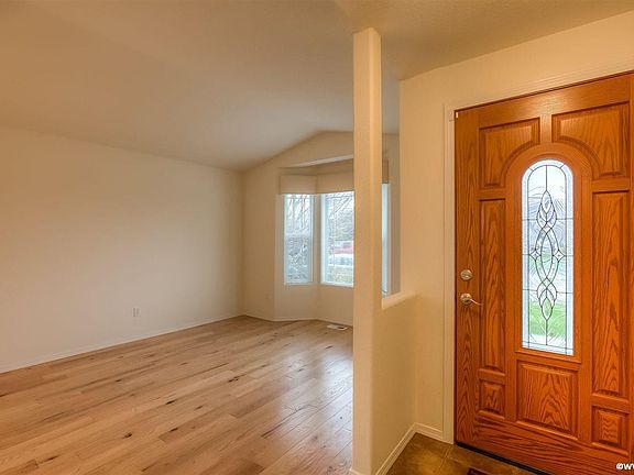 Very well maintained 3 Bd, 2 Ba home in newer neighborhood, features SS appliances, laundry near bedrooms, wood flooring throughout. En suite Master has jetted tub, large shower & heated tile floor with additional tranquil space w/ gas fireplace & custom cabinetry opening to landscaped backyard & large deck w/power awning. 2nd gas fireplace in family room to keep everyone warm & cozy. Forced air Gas & AC as well.