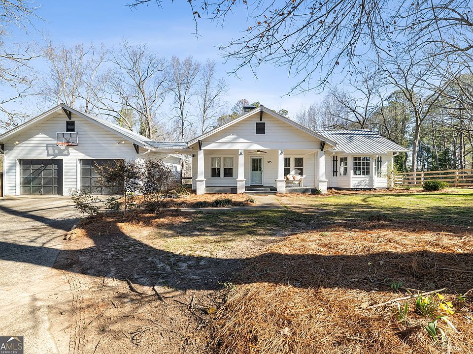 This 1930 farmhouse was fully updated in 2022 and is the perfect mix of historic charm and modern updates. The wide front porch welcomes you in-perfect for morning coffee or unwinding after a long day. Inside, the open floor plan makes the home feel bright and spacious. The kitchen has leathered granite countertops, white shaker cabinets, open shelving, and stainless steel appliances. Down the hall, the secondary bath stands out with its bold patterned tile and glass-enclosed shower. The bedrooms are roomy, and the primary suite includes a great walk-in closet. The detached two-car garage has been finished into a heated and cooled space-perfect for a home office, studio, gym, or extra living area. Sitting on 2.11 acres, this property has a fenced yard, a koi pond, and plenty of space for gardening, chickens, or small livestock-an ideal setup for homesteading. Just 3 miles from Milton and minutes to Hickory Flat, you're close to everything while still feeling like you are in the country.