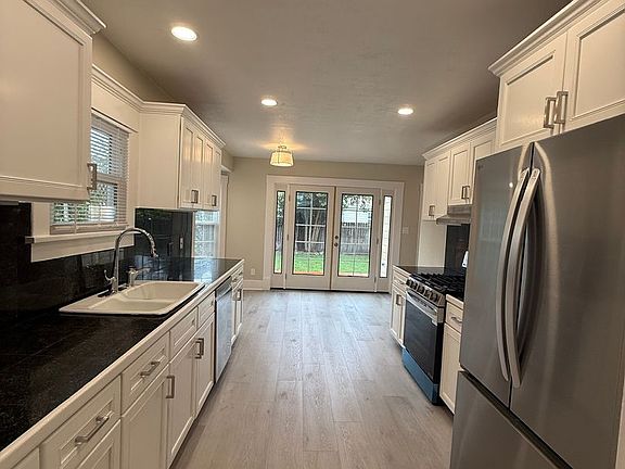 This 3 bedroom 2 bathroom single family home is located in Santa Rosa's Junior College area and has recently been thoroughly updated. Updates include new windows throughout, new LVP flooring, new paint and carpet. Through the front door is the large living room with LVP flooring lots of natural lights and new LED can lights. Two carpeted bedrooms are located towards the front of the house and share a full hallway bathroom with tub/shower combo. The kitchen features freshly painted cabinets, granite tile countertops, new stainless steel gas stove, dishwasher and refrigerator. There is a small dining area of the kitchen with lots of windows and access to the new French door that leads to the newly built deck and freshly sodded backyard area. The third carpeted bedroom is located towards the back of the house and is adjacent to another full bathroom with tub/shower combo. The laundry closet is located off the kitchen with washer and dryer provided (not warrantied). Detached 1-car garage. Landscaping included. 1 small dog (under 30lbs.) and 1 cat negotiable. Sorry no co-signer. 1 Year Lease (MT)
