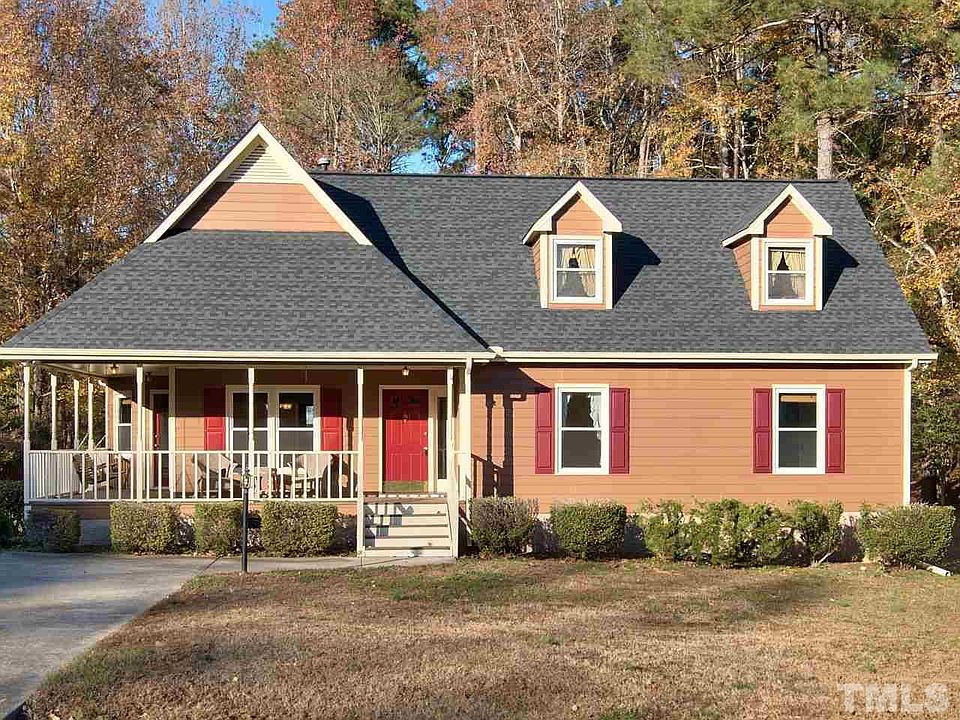 Charming Cape Cod with 4 bedrooms/3 baths in SW Durham. Home is on .704 acre with a tranquil community maintained pond and 7.5 acres behind. Hardwoods have recently been refinished. Three bedrooms and 2 baths are on main floor and one bedroom/bath on second. Newer carpet, recently updated kitchen and baths. Wrap around porch. Walk-in attic. Basketball goal on concrete pad in backyard, or can easily use for outdoor seating and a fire pit. Convenient to I-40, Duke, RTP, UNC and Southpoint Mall. Come see!