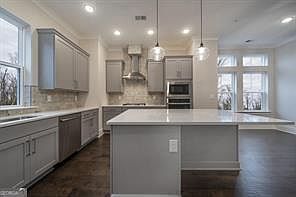 Welcome to this unique and exceptional town-home at Hargrove. On trend upgrades including lighting package, Stainless appliance package with Refrigerator, gas cooktop, wall oven and wall microwave, stainless chimney vent hood, washer and dryer, hardwood floors throughout; 2 flights of stair runners; upgraded kitchen backsplash tile; oversized master shower; quartz counters in all full baths; motion censored closet lights; key less entry; tankless water heater. Smart Home with Ring, Nest Thermostat and Key less entry. Pristine Home. On East Decatur Path, and sits between two parks. Beautiful walk-ability to many shops, forest, parks, and more. Unfurnished or limited furnishings can be provided. Move-in ready. Copyright Georgia MLS. All rights reserved. Information is deemed reliable but not guaranteed.