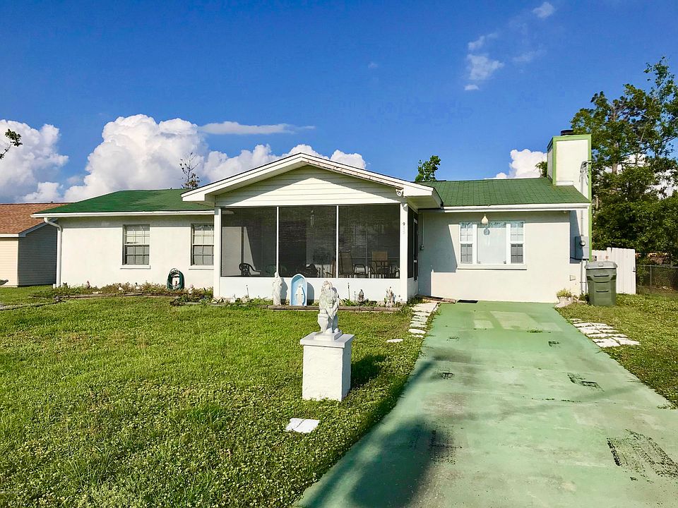 With a great location in the heart of Lynn Haven, this home offers an open floor plan, a large lot, detached garage and a pool! This home is ready for occupancy with very minor storm damage. You'll love the covered screened in front porch that leads to the front door. Entering the home you'll find open space to do as you wish with three good size bedrooms! The kitchen is easily accessed from the dining and living space and you'll love the extra space offered by the Florida room on back of the home! Schedule your showing today!