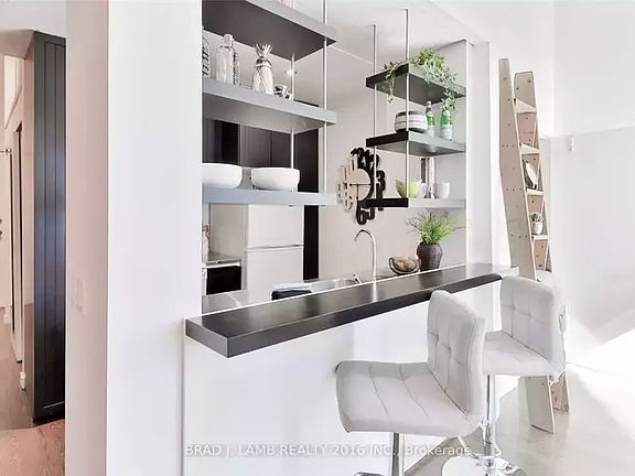 Stunning loft in the historic Massey Harris Lofts. This charming unit boasts ceilings over 11 feet high, exposed brick walls, heated wooden floors, and oversized windows that flood the space with natural light. The kitchen and bathroom, designed by Cecconi Simone, offer a sleek and modern aesthetic. A Murphy bed provides additional flexibility, while extra storage is accessible via pull-down stairs. The spacious, spa-inspired three-piece washroom adds a touch of luxury. The building also offers bike storage for convenience. Located less than a three-minute walk from Massey Harris Park, Bill Johnston Park, and Stanley Park, this loft epitomizes urban living at its finest.Inclusions: S/S fridge, Stove, Dishwasher, Built In Microwave, Stacked Washer/Dryer, Electric Light Fixtures, Custom Wood Shutters, Stand Alone Wooden Ladder And Murphy Bed Included.Included In Lease: Building Insurance, Heat, Water, Central Air Conditioning ,Common Elements