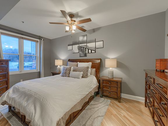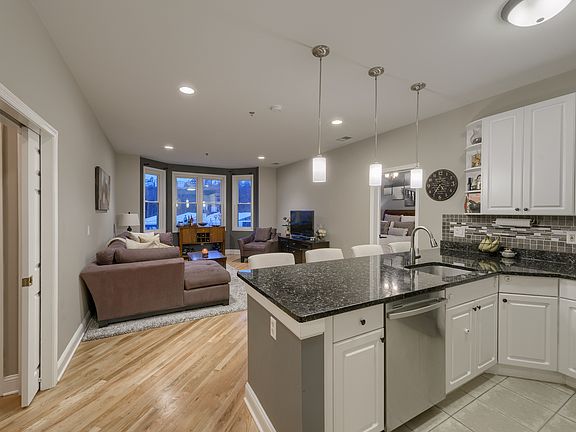 Elegant and updated 2 bed, 2 bath with one car garage parking in a boutique elevator building. Open space layout equipped with upgraded kitchen, offering new stainless-steel appliances, granite countertops, custom back splash, and large breakfast bar. Overlooks living space with plenty of natural light via large bay windows. Master bedroom suite with walk-in closet. Pocket door separates second bedroom and bathroom from common space for additional privacy. Washer/dryer in-unit, central A/C, high ceilings, recessed lighting, and hardwood floors throughout. The building features an exercise room and common courtyard with grills and patio furniture. Easily accessible to Bus and Light Rail, conveniently located across from the Shoprite, and near parks, shops, and restaurants. Move in ready!