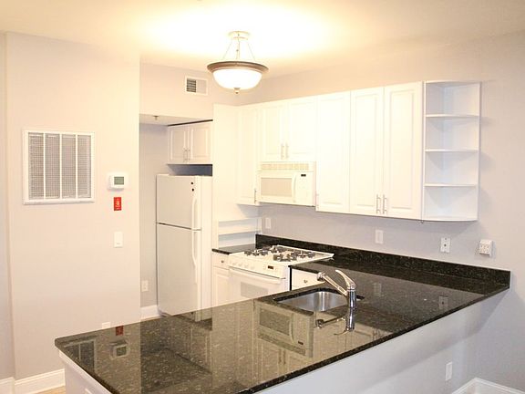Beautiful 2 bedroom/2 bath Top Floor Apartment, located in a luxury elevator condominium building. This freshly painted unit features an open kitchen, with granite counter tops, modern appliances and a breakfast bar overlooking the open living area. In-unit washer and dryer, hardwood floors, central A/C/Heat and walk-in closets. Custom window treatments and ceiling fixtures round out this premium space. One indoor garage parking space included in the rent and a landscaped common terrace make this apartment is a must see! All located footsteps to the Shoprite, NJ Light Rail, NYC Transportation, Parks & Restaurants.