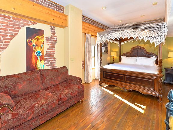 Live in this European loft design home with a whimsical Southwestern flair and collect rental income from the front 2 commercial units. The building was originally built in 1914 with brick exterior, wood ceilings and floors, and wrought iron spiral staircase. The modernized kitchen has granite counters, stainless steel sink, dishwasher and gas stove. One bedroom is on the bottom floor and another one on the mezzanine floor which has a antique copper soaking tub and sitting area. Only 1/2 block to park, entertainment and restaurants. One storefront is a Market that has been a long time tenant. 2nd storefront was a long time Chiropractor office, but now vacant and ready for new tenant or convert to more living space or VRBO.