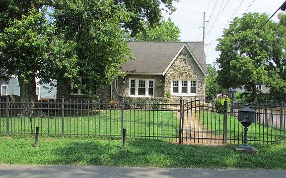 Lovely stone home on corner lot, nice hardwood floors throughout, new paint, appliances and central unit for upstairs. Living room w/fireplace, privacy fenced backyard with storage building and fence front yard with wrought iron look fencing. Replacement windows throughout and nice clean basement that makes nice workshop and tornado shelter.