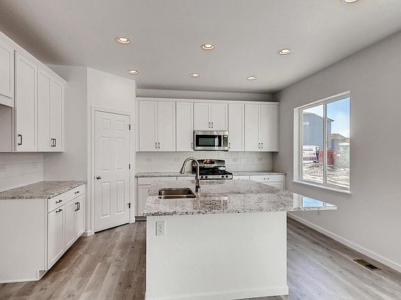 Ready for Immediate Move-In! This beautiful two story home boasts a large foyer with main floor study and elegant great room with 2 ft extension and gas fireplace. Adjacent to the great room you'll find an open dining area and kitchen featuring white linen cabinets with crown molding and rollout shelves, stainless steel appliances including a gas range, sophisticated granite countertops and walk-in pantry. The second floor features an impressive master suite with 5 piece master bath and and an enormous walk-in closet. Play some games in the loft or enjoy the convenience of an upstairs laundry room. Additional highlights include a partial basement with 9 ft foundation walls, central air conditioning, 3 car tandem garage with keyless entry pad and garage door opener and extensive laminate wood flooring on the main level.