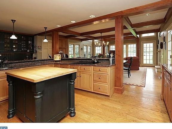 The ultimate in style & grace, this classic, custom farmhouse reproduction built by Rich Washburn is understated elegance unlike any other. Designed w/ high quality materials against gorgeous backdrop of 6.5 coveted acres in Upper Makefield the owners have tastefully enlarged the original home w/ welcoming, large kitchen/keeping rm, banquet DR, master BR/BTH & add'l space on 2nd flr. Prof. designed interior, kitchen is the heart of the home w/ chef quality cherry cabinets, granite, subzero ref., Dacor stove/dbl ovens, etc. Large windows open to lush landscaping & generous yard bordered entirely w/majestic norway spruce. Four F/P, handsome den, multiple patios off FR, DR/den w/ views of open space. Three large BR's plus master, 3rd unf. flr for more space. Luxurious master w/FP, gorgeous cabinets, steam shower, jacuzzi, tumbled marble counters & flr, radiant hted flr. Sport court, Anthony gunite pool, 24' x 50' barn w/ unf. storage above, garage & heated gym. 2 mi. to I95, 15 min to Trenton train.