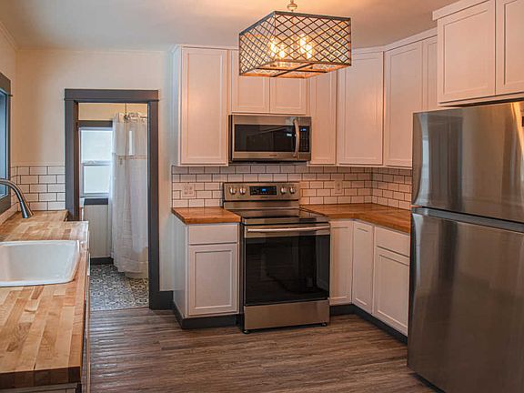 Completely Remodeled Downtown Charmer. This 2 bedroom, 1 bath house has been remodeled with the following all NEW features: roof, windows, siding, driveway, paint, flooring, appliances, cabinets, vanity, toilet, baseboards, interior paint, butcher block counters and more! All that is needed now is your personal touch to make this house a home, or use as an investment property/vacation rental. Seller is licensed real estate agent.