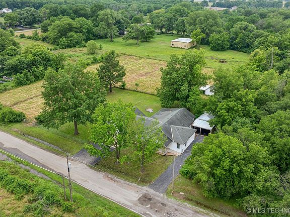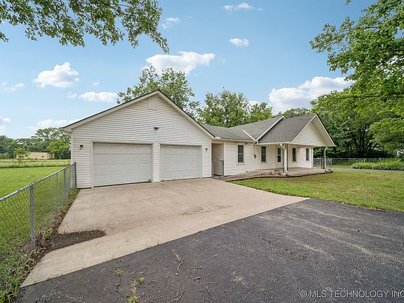 In-town acreage with endless potential! Sitting on approximately 1.79 acres m/l per tax records in Dewey, this 2-bedroom, 2-bath home features a spacious layout with a large living area, generous dining space, and oversized utility room. This one will be sold AS-IS with the seller doing no repairs or replacements so FHA or VA financing will not be an option. Exterior highlights include low-maintenance vinyl siding, vinyl replacement windows, a charming covered front porch, and a covered back patio—ideal for relaxing or entertaining. The property also features two 2-car detached garages, a carport, and multiple outbuildings for storage, hobbies, or workshop use.