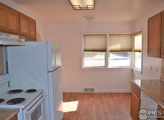 A little elbow grease and a paint brush, this ranch will be dazzling. Walking distance to Lake Loveland & downtown. Mostly hardwood floors, remodeled kitchen a few years ago and a roomy eating area. Coffered ceilings, arched doorways and Hunter-Douglas blinds. Includes refrigerator, clothes washer and clothes dryer. Attached single car garage. HUGE LOT is fully fenced, double gate in back with alley access for RV PARKING, and NO HOA. Perfect starter home or investment property.